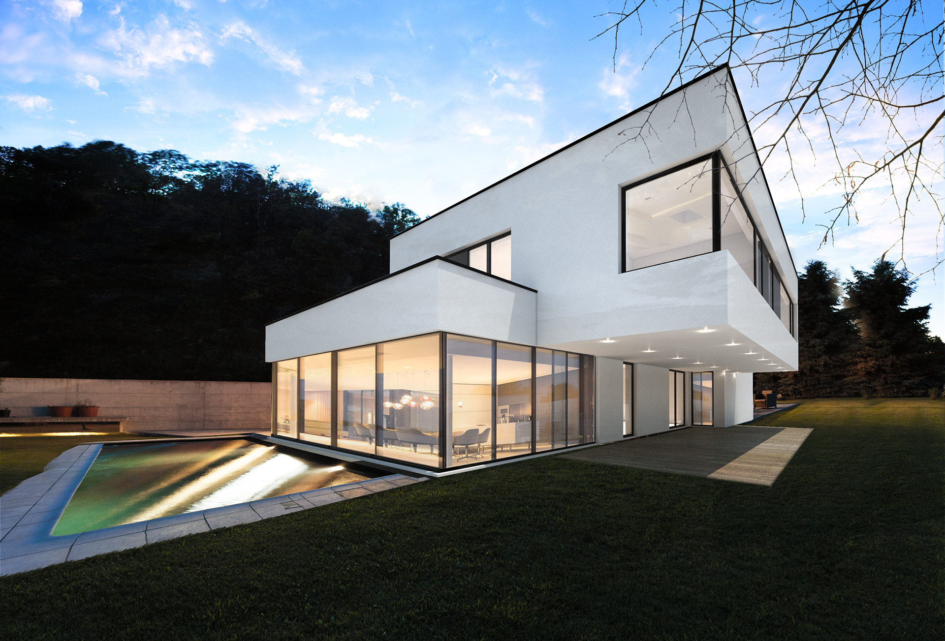 Připravujeme realizaci prémiové vily v Praze - Modřanech. Aktuálně pracujeme na technickém řešení a výrobě, abychom během 11/2019 mohli provést samotnou montáž na místě. Na základě požadavku investora budou rámy oken minimalizovány, aby co nejvíce vynikly velké prosklené plochy. Všechna okna budou z profilů ALUPROF, konkrétně v systémech MB-86SI, MB-77HS HI s nadstandard prvky, jako obloukové zasklení vstupní stěny, kulaté okno průměru 1500 mm, čtečky otisku prstů pro ovládání zámku a další moderní doplňky. Rohové sestavy budou řešeny jako celoskleněné strukturální bez svislých profilů. V místech, kde jsou pasová okna předsazena před svislé betonové konstrukce, bude použito speciálních smaltovaných skel v černé barvě.