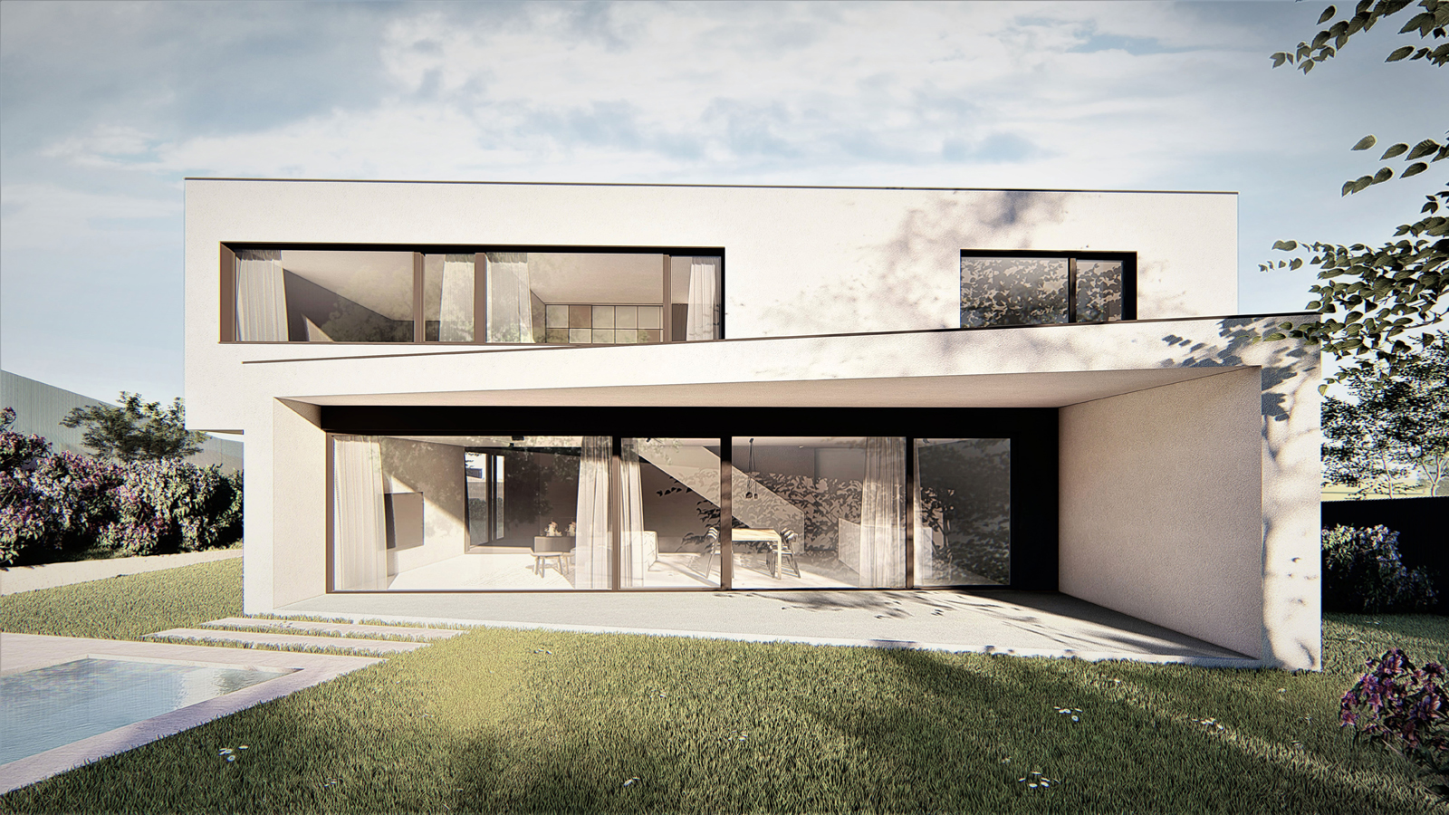 Rodinný dům byl navržen ateliérem AV architekti Ing. Arch. Miloslava Vodičky (https://avarchitekti.cz/) a dodávku oken provádíme ve spolupráci se stavební společností SIMPLE PROGRESS s.r.o. (https://simpleprogress.cz/). Specifikem oken jsou velkoformátové zasklení pod přesahem střechy, kde budou osazena skla o váze 995 kg a 800 kg. Pro zasklívání bude použita speciální zasklívací a manipulační technika od společnosti KBM Stavební servis.