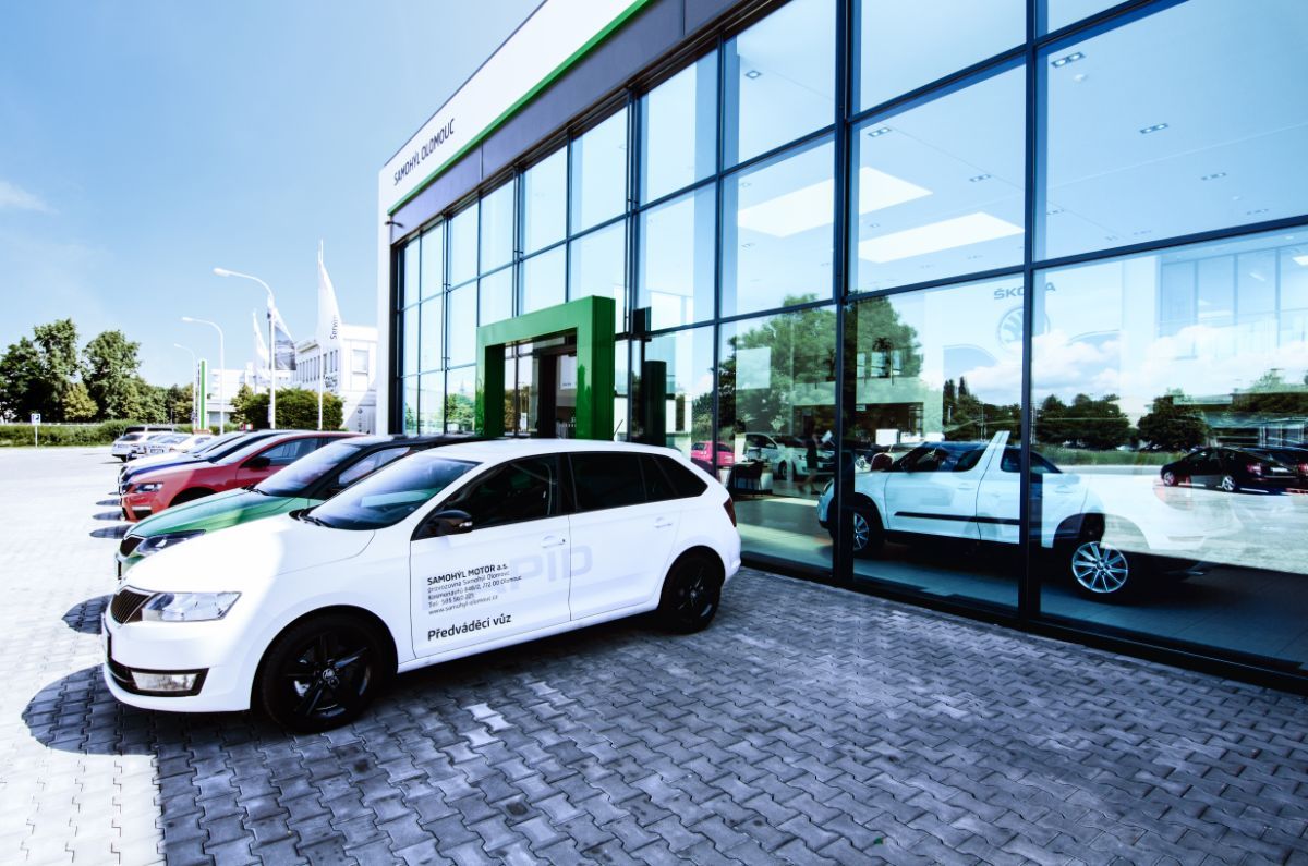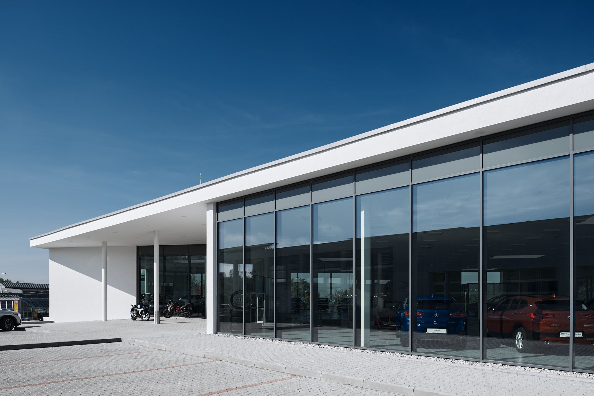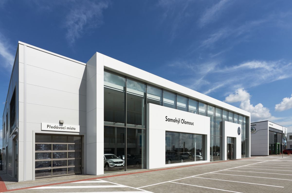 Po rozsáhlém požáru původních objektů proběhla v roce 2015 rozsáhlá rekonstrukce areálu vč. dostavby moderního autosalonu Škoda již podle nového konceptu Škoda. Jako subdodavatel zlínské stavební společnosti Navláčil, jsme měli možnost se podílet na dodávce hliníkových prosklených fasád a ostatních prosklených výplní vč. interiérových příček, které oddělují hlavní halu showroomu od kanceláří.
