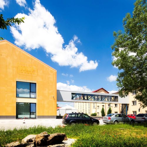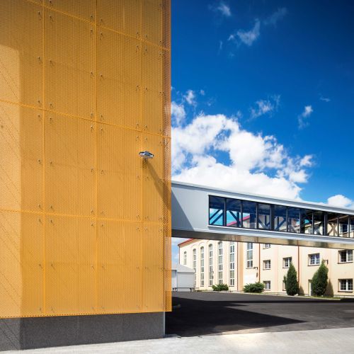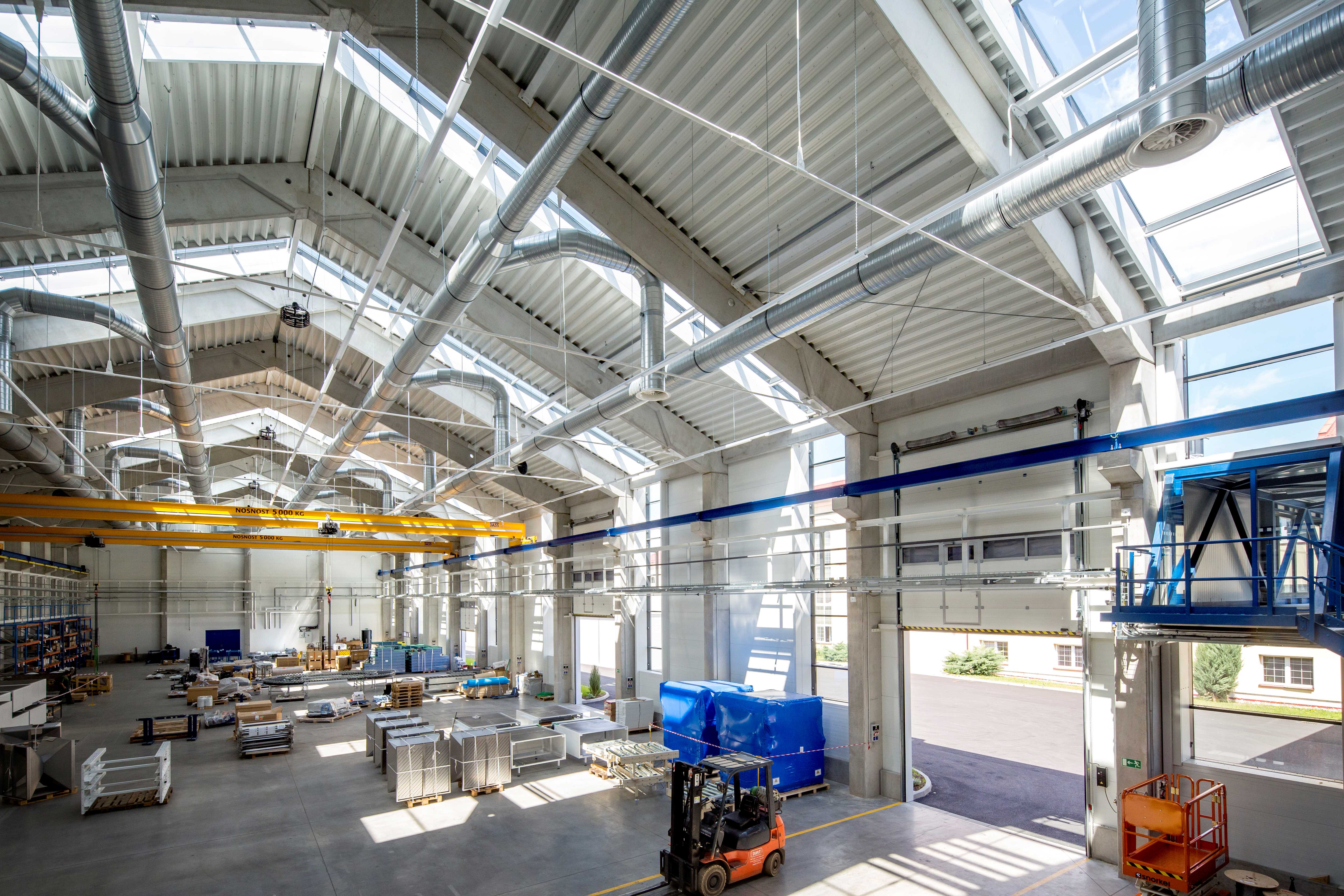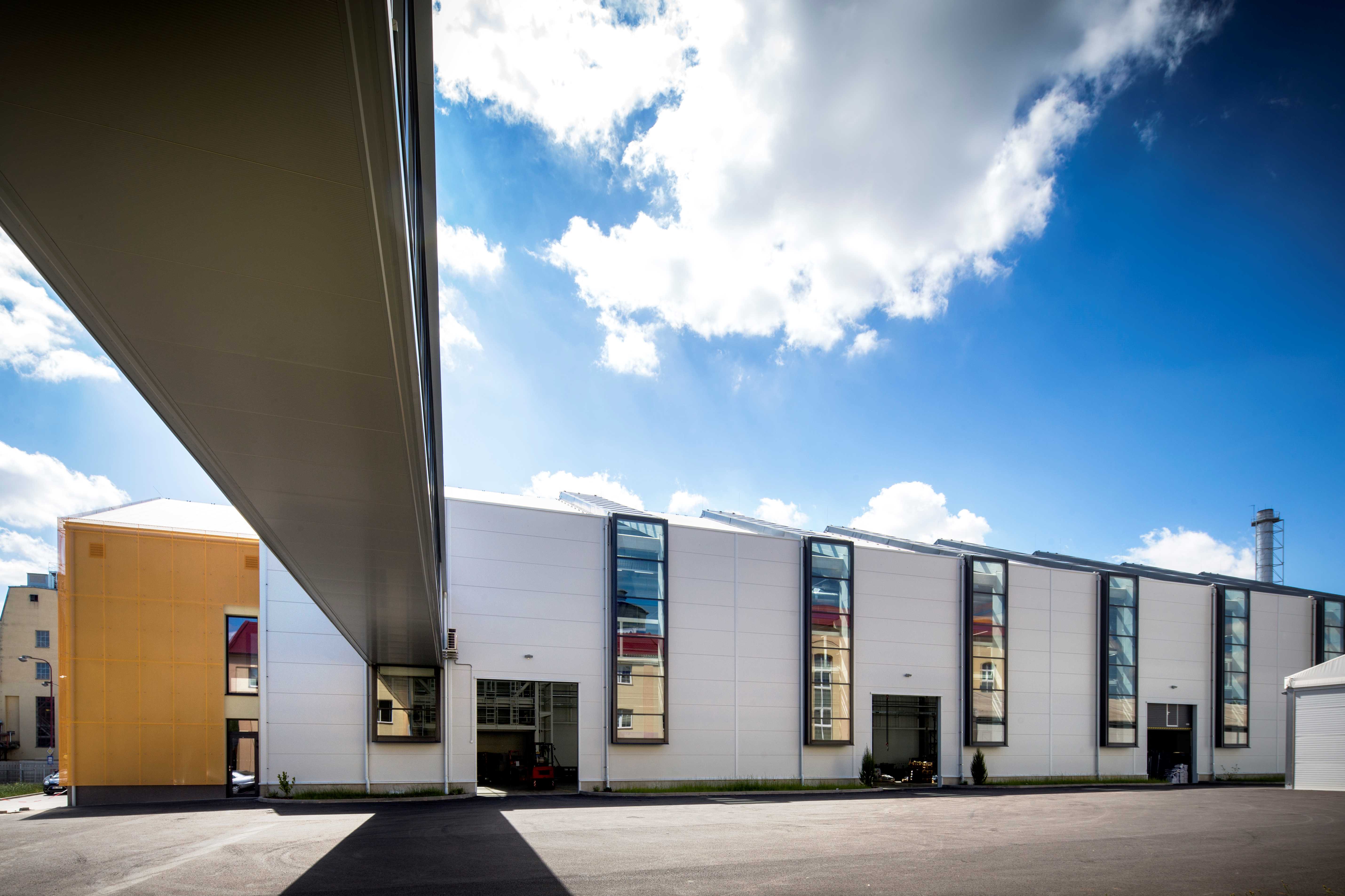 Novostavba této montážní haly navazuje na původní již revitalizované objekty areálu býválé továrny na cukr v Chrudimi. Naše dodávka představovala hliníková okna a vstupní dveře do objektu a především 8 ks střešních sedlových světlíků. Zvláštností je jejich tvar kopírující střechu a přecházející do svislých prosklených fasád. Pro tuto realizaci bylo zapotřebí navrhnout individuální řešení přímo pro tento projekt.