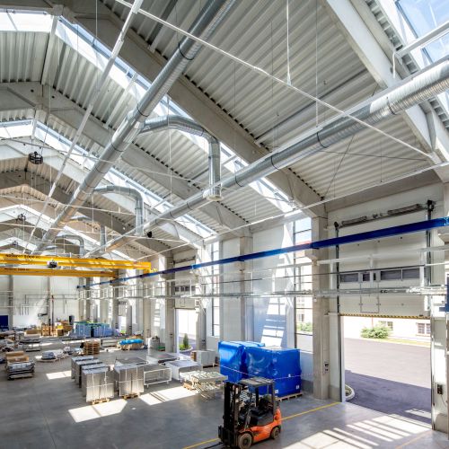 Administrativní, průmyslové areály, prosklené střechy
