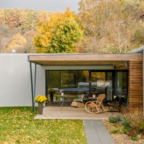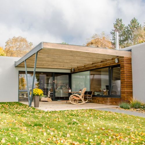 Tento překrásný rodinný dům se nachází v blízkosti Zlína v obci Březnice. Opět jsme kombinovali více profilových řad a systémů, abychom docílili očekávaného vzhledu a funkčnosti, kterou požadoval architekt s klientem. Například čelní čtvercové zasklení je opatřeno protislunečním sklem pro regulaci vstupujícího tepla do domu, protože okenní výplně nejsou chráněny venkovními žaluziemi.