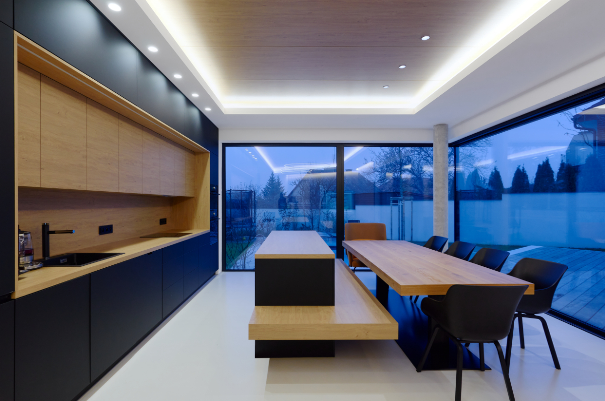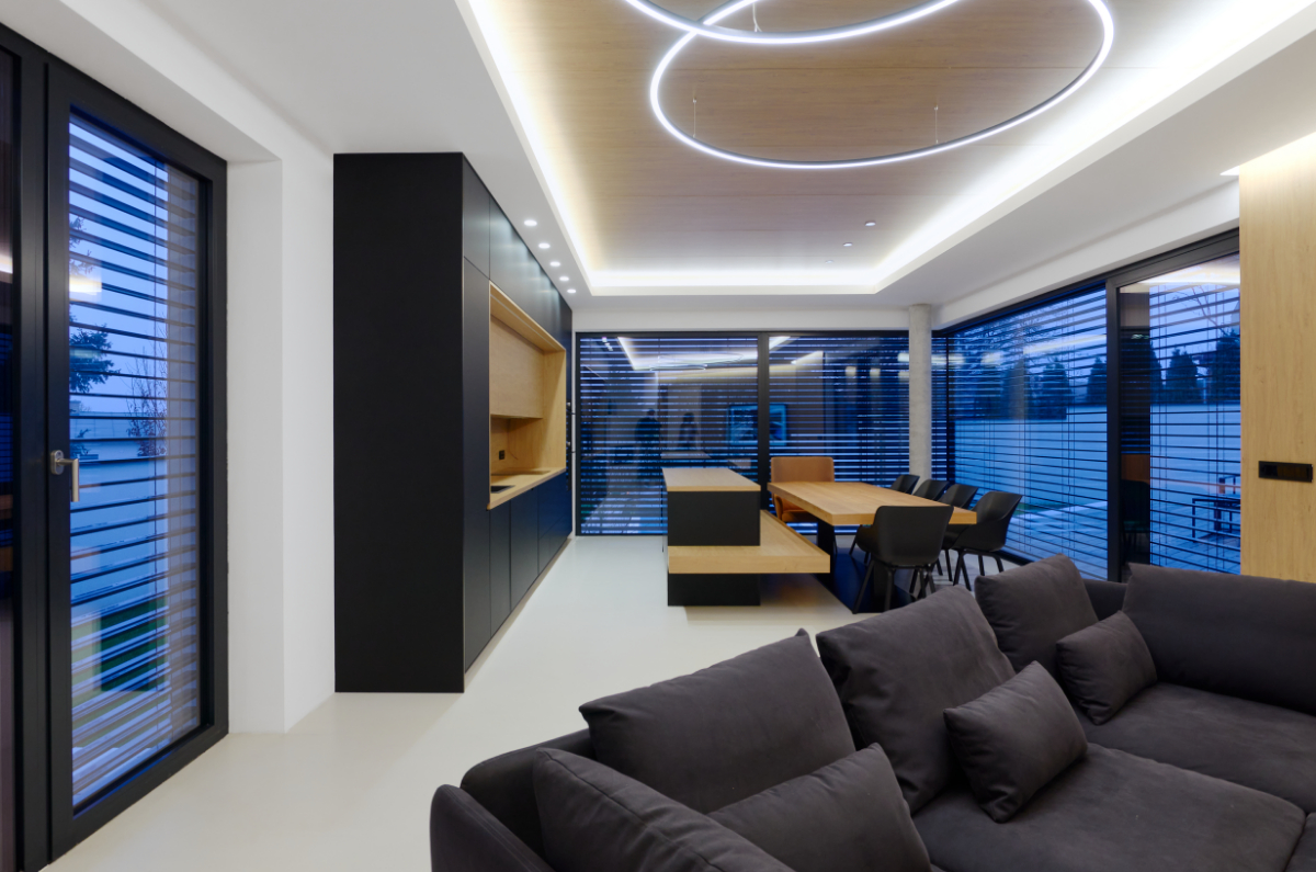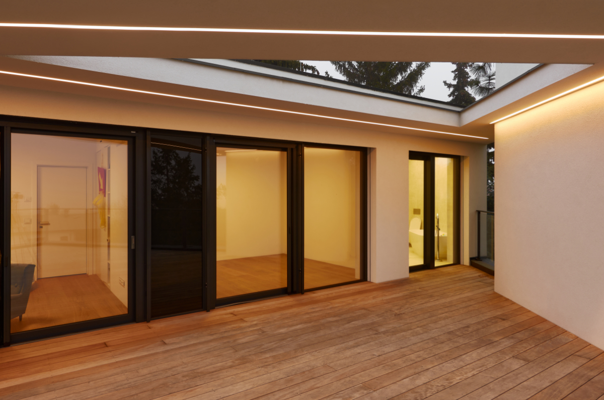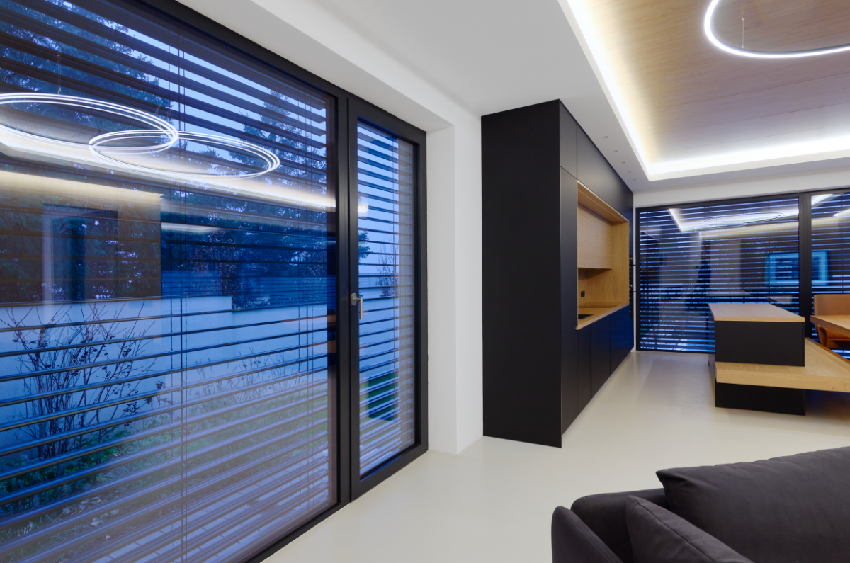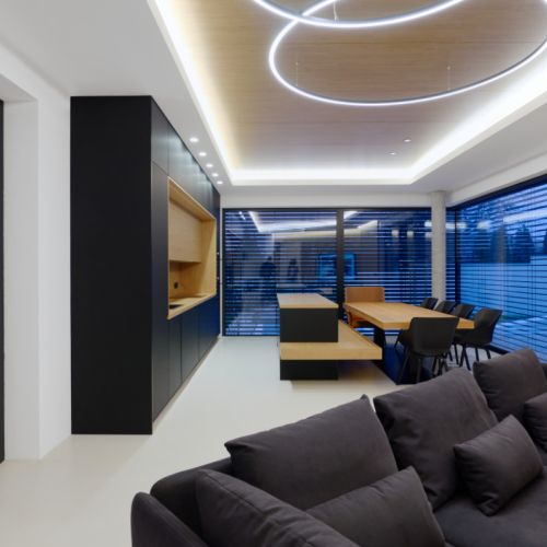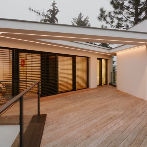 Moderní dvoupodlažní vila na rohové parcele v původní zástavbě Dolních Počernic navržená studiem Kareš&Rais. Na vile jsou kombinovány všechny moderní systémy ALUPROF, které se používájí pro rodinnou výstavbu v nízkoenergetickém standardu. Okna jsou vyrobeny z kvalitních, vysoce izolačních rámů MB-86SI v kombinaci s bezpečnostním izolačním trojsklem. S důrazem na design a ničím nerušený výhled ven byly okenní rámy v obývací části minimalizovány a částečně skryty. Všechny výplně jsou v exteriéru osazeny venkovními žaluziemi CLIMAX Z-90 NOVAL.