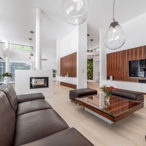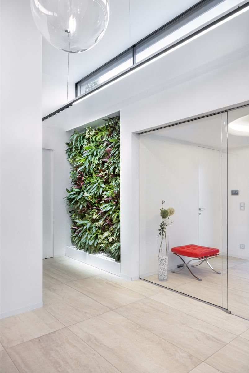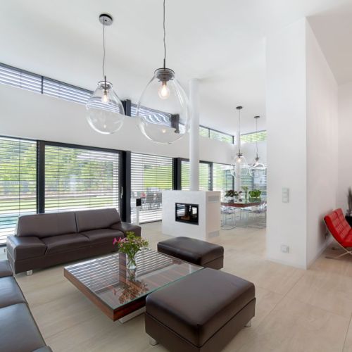 Celý dům je velmi promyšlený už od jeho vstupu - ten je důstojný a prostorný. Navazuje hlavní obývací část, která je ze všech stran celá prosklená. Ve zvýšeném stropě jsou navíc dodatečné světlíky, které do interiéru přivádí dostatek denního světla, navíc je prostor vhodně uspořádán, aby byl ze všech místností co nejlepší výhled do zahrady a do ostatních částí domu skrz skleněná atria. Autoři architektonického návrhu jsou: Ing. Arch. Martin Kareš, MBA, PhD. a Ing. Arch. Robert Rais, MBA, PhD. (www.karesrais.cz)máte zájem o podobnou realizaci?