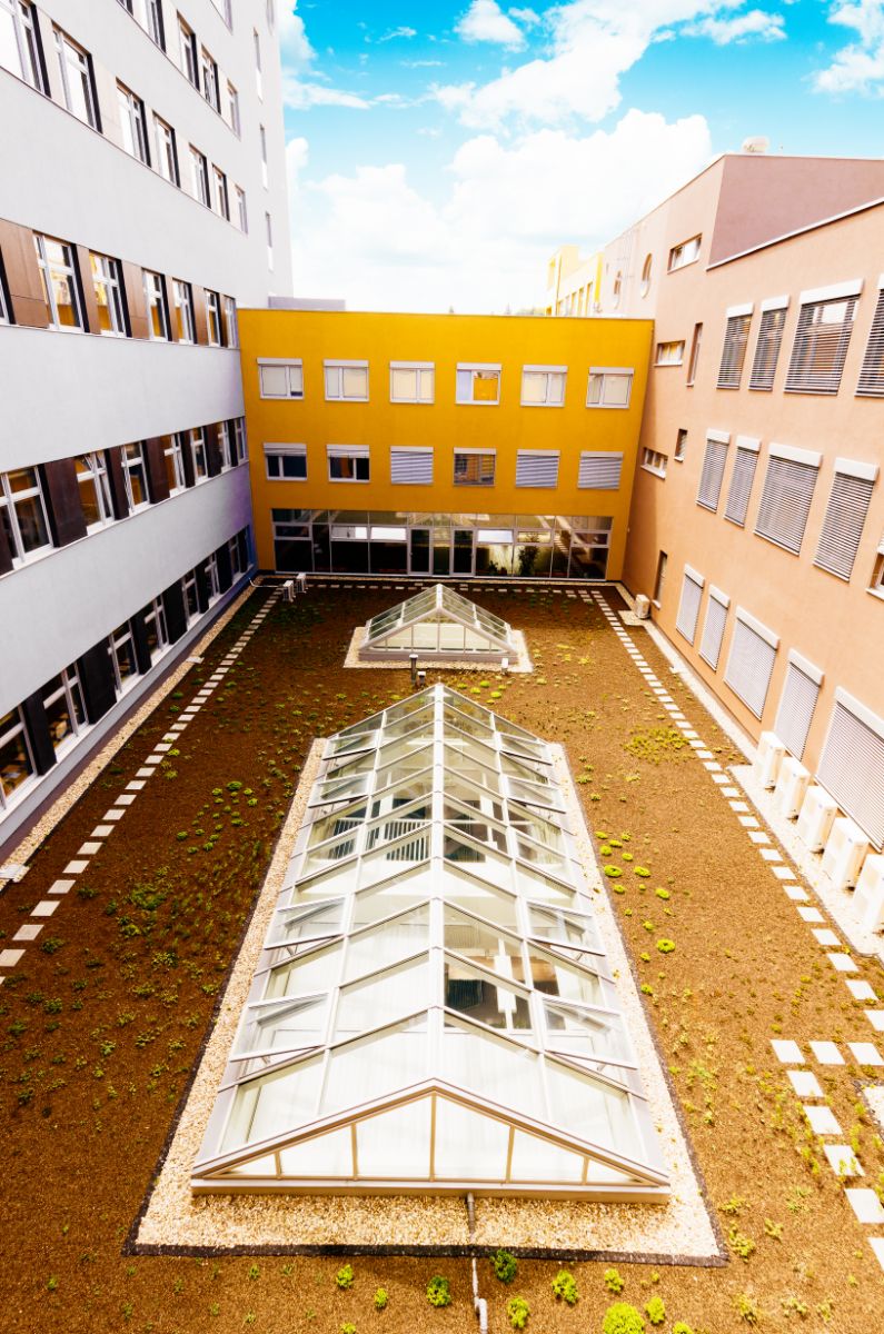 Jako subdodavatel zlínské stavební společnosti Zlínstav, a.s, jsme se účastnili realizace prosklených fasád a střešních světlíku v rámci rekonstrukce a rozšíření budovy fakulty chemické VUT Brno. Hlavní sestava dvou kusů velkých světlíků se nachází nad frekventovanými prostory knihovny a studovny. Jejich součástí jsou i motoricky ovládaná ventilační křídla.