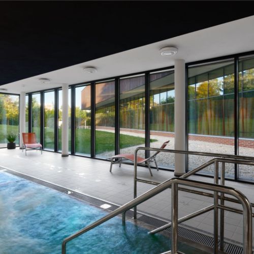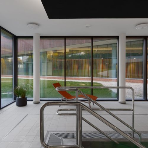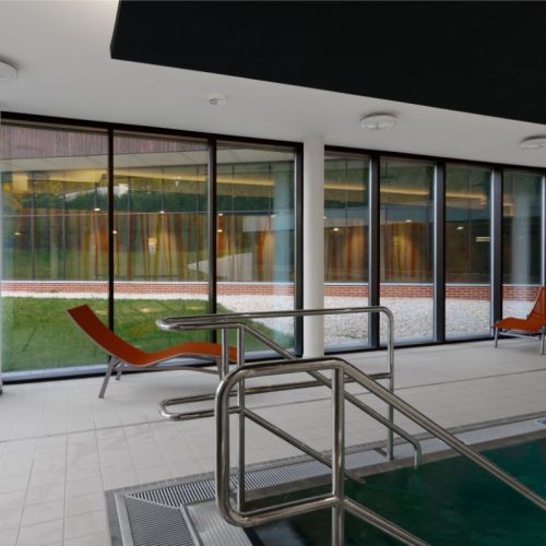 Velký krytý plavecký bazén nacházející v centru Zlína v komplexu původních zimních lázní z roku 1950 prošel v roce 2018 rozsáhlou rekonstrukcí a modernizací. Součástí rekonstrukce byly také výměny původních oken za nové moderní a energeticky úsporné prosklené fasády ALUPROF MB-SRS0N naší výroby se speciálním typem zasklení AGC. Hliníkové profily jsou opatřeny povrchovou úpravou odolnou proti agresivnímu prosktředí s vysokou vlhkostí a chlórem. Celková délka prosklených fasád je více než 80 m.
