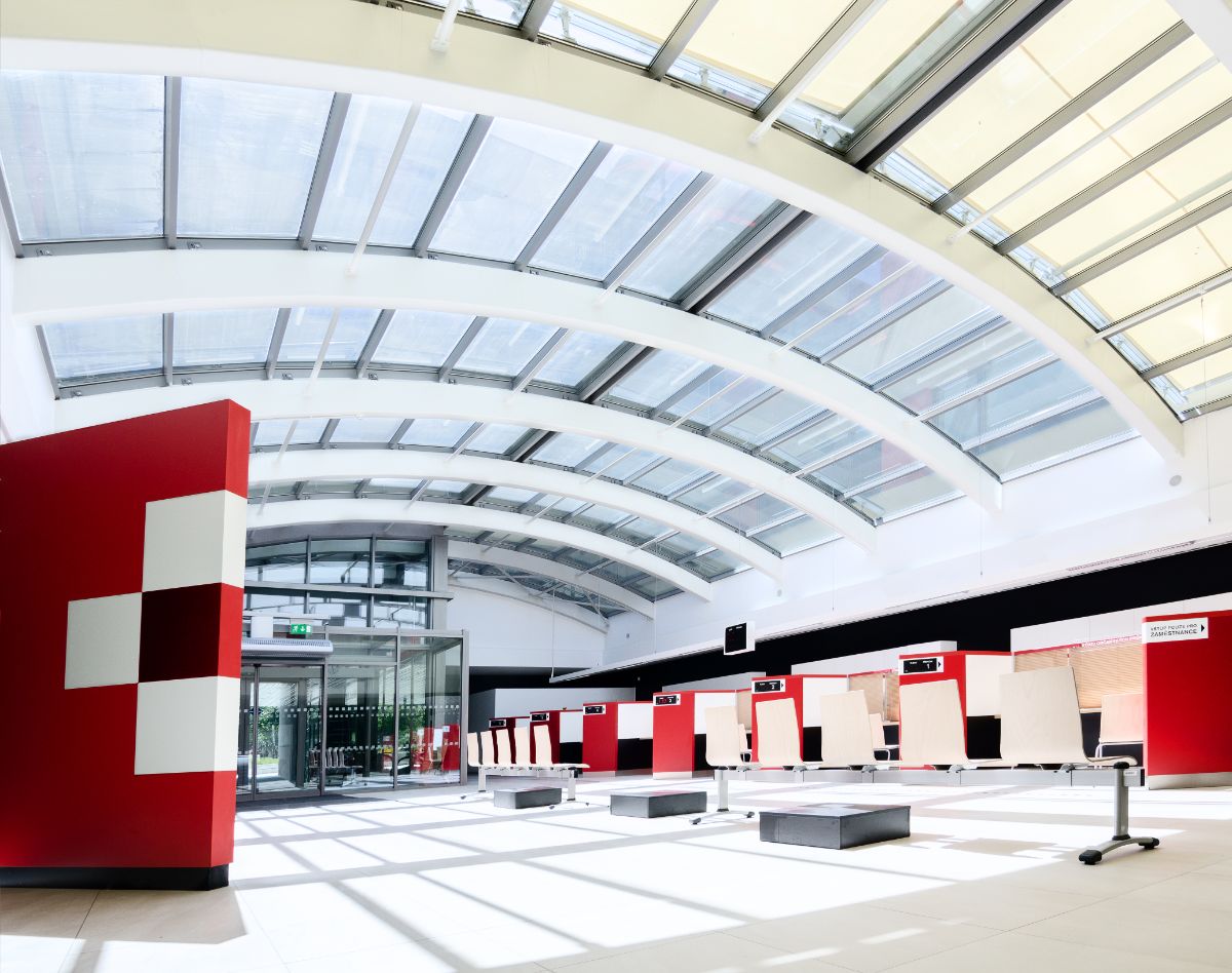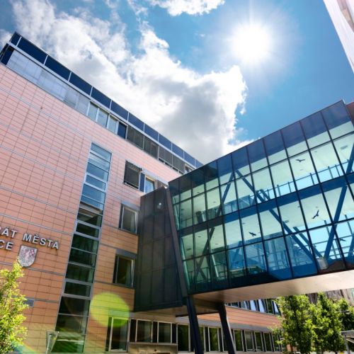 Naší dodávkou byly veškeré hliníkové prosklené výplně a fasády a najdeme zde mnoho atypických velmi složitých řešení. Atrium budovy zakrývá rozsáhlý obloukový prosklený světlík se stínící technikou. V průčelí objektu je dominantní prosklená fasáda s typickým znakem města Olomouce „moravskou orlicí“ vytvořenou na sklech a nakonec jako spojení s vedlejším objektem slouží prosklený dvoupodlažní prosklený koridor.