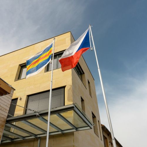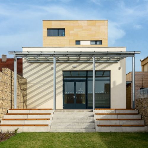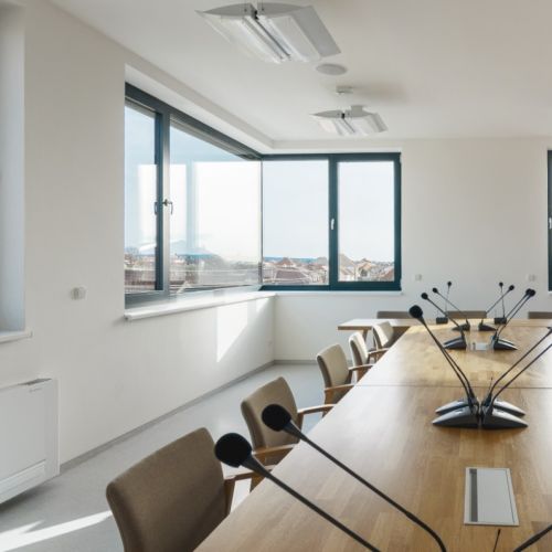Naše dodávka zahrnovala okna, dveře a posuvné dveře v systémech ALUPROF, které jsou efektně osazeny a zakryty ve fasádním keramickém obkladu. Z detailů stojí za zmínku také střešní prosklení v obřadní síni nebo prosklený strukturální roh v zasedací místnosti zastupitelstva.