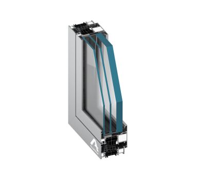- Profily se třemi komorami, kde střední část tvoří izolační komora mezi tepelnými vložkami o šířce 43 nebo 42 mm,